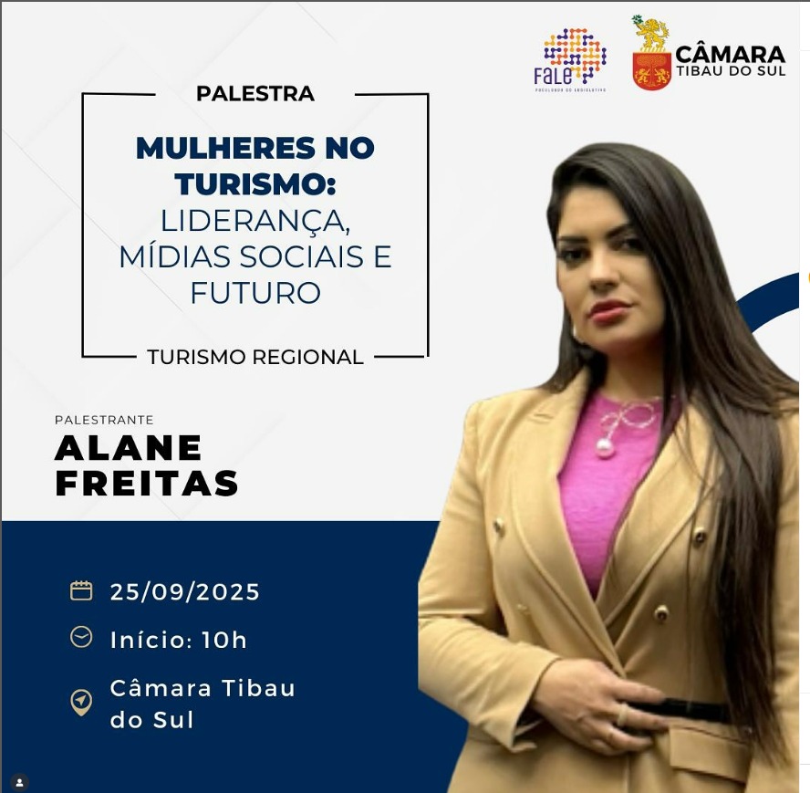A palestra acontecerá no plenário da Câmara Municipal e será aberta ao público, oferecendo um espaço para aprendizado, troca de experiências e incentivo ao protagonismo feminino no turismo e no empreendedorismo.